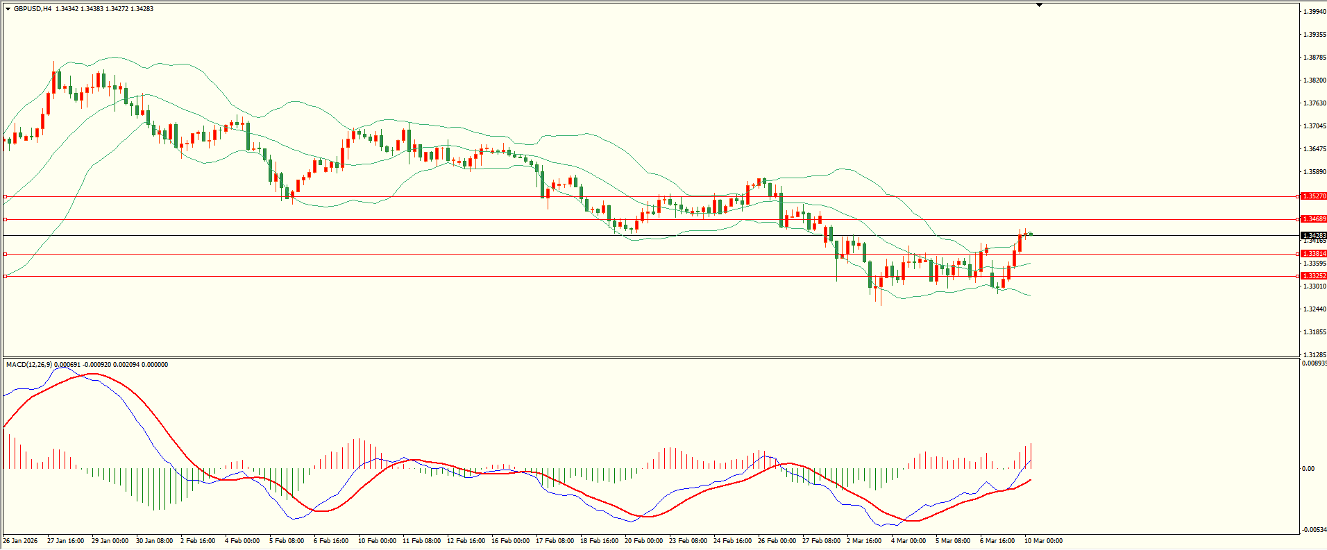 英镑昨日先抑后扬,至收盘触及第二阻力略有反复,日线报收大阳线,上方临近前低密集压力区,收复后方可继续,从4H来看布林中轨拐头向上,MACD零轴附近运行,日内下方首要支撑1.3380,第二支撑1.3325,上方阻力1.3465,1.3520-30,第一支撑在没有失守前短线有望测试第一阻力。
