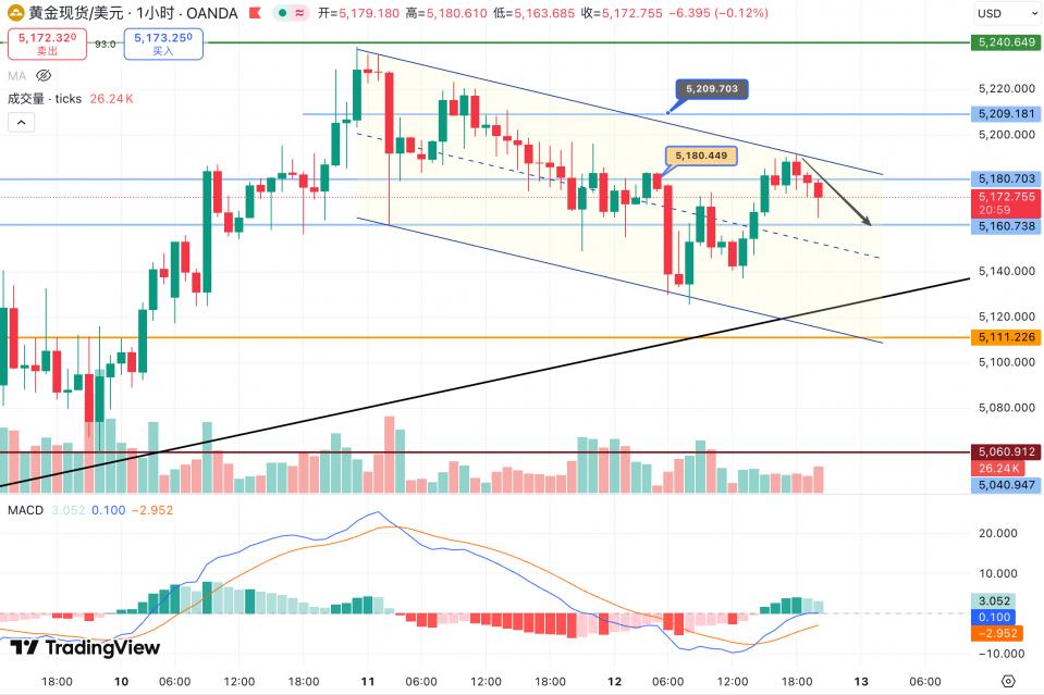 若跌破5160,金价大概率将继续向5140甚至5100 一线回落;
