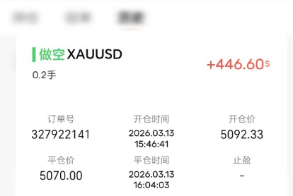 黄金盘中给出5092空单进场的操作策略,行情如期下跌,5070短线获利出局,收获446美刀