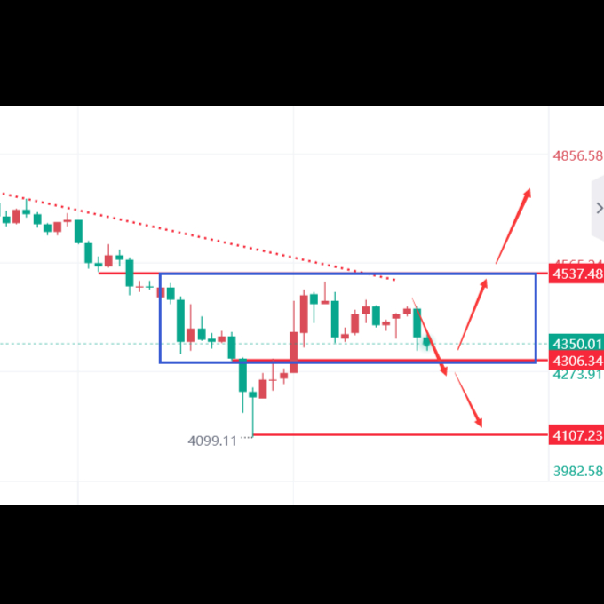 对于接下来的黄金来说,首先关注这个400-500美元空间幅度的扫荡,对应高点防守4530-4540,低点分界4090-4080
