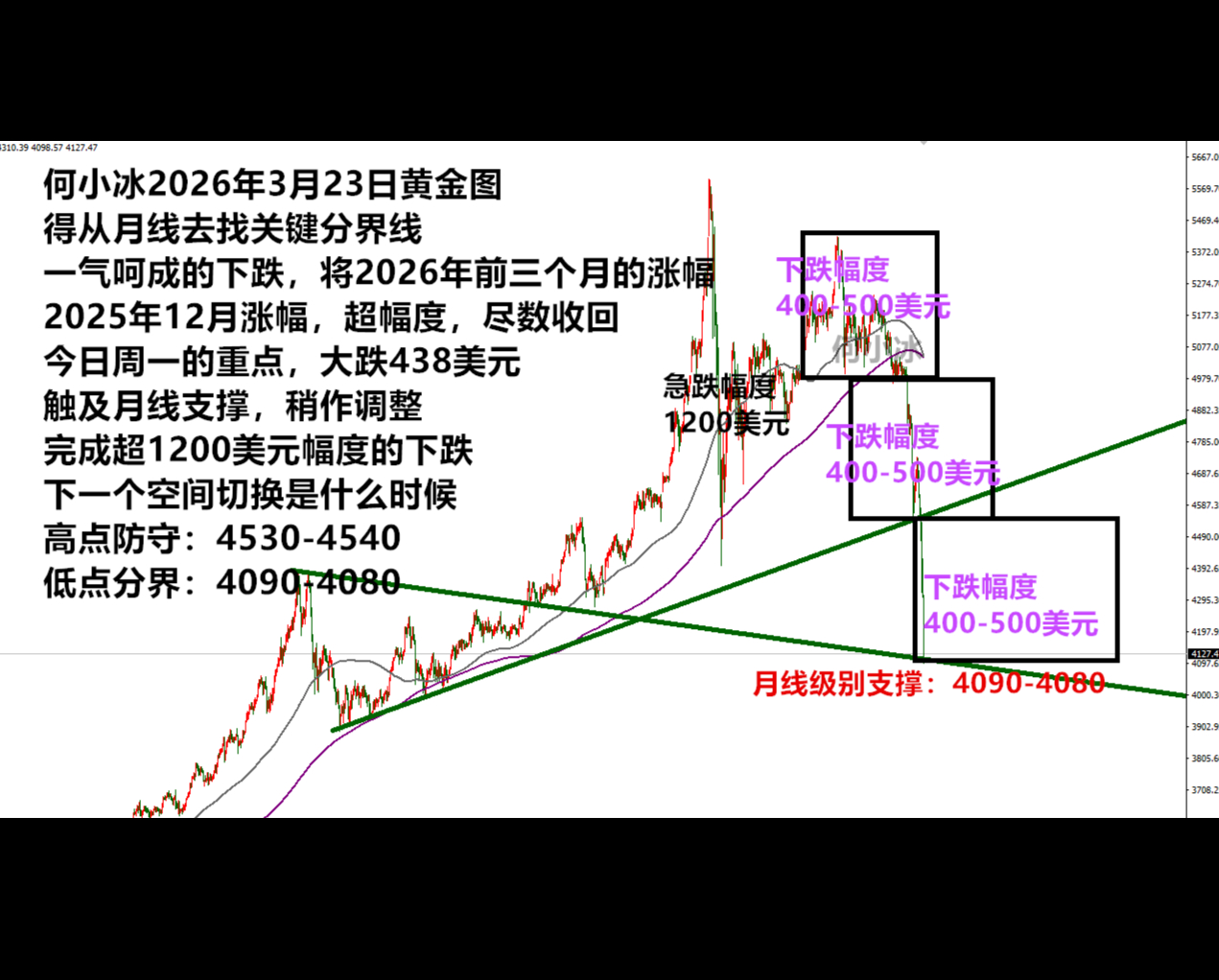 黄金消息面解析:现货黄金正经历剧烈调整,3月23日周一,价格一度回落至4165美元/盎司附近,单日跌幅接近7%,周度累计下跌超过9%。尽管美伊冲突持续升级并推高能源成本,但黄金未能发挥传统避险属性,反而受制于原油飙升引发的通胀连锁反应以及主要央行政策预期的快速转变。这一负面三重因素主导了交易员的仓位调整,市场情绪从地缘避险转向宏观紧缩担忧。