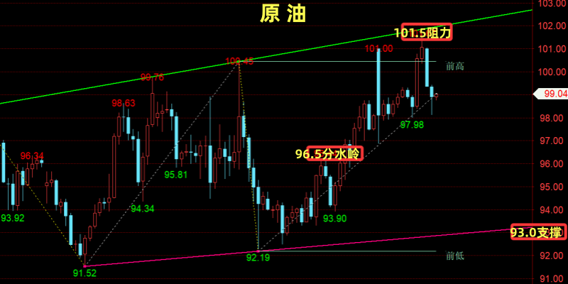 【个人建议:低多为主;WTI分水岭:97.0/桶!以上观点,仅供参考;分散合理布局,严控风险!关注笔者(企鹅:304236956)投资不焦虑,交易有方法】