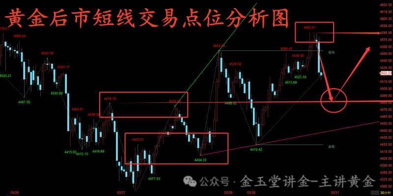 3、晚间行情如果再度触及上方4580-4600关口压制但仍难以突破,那么我们短线也可以考虑轻仓承压做空一波,下方则再看4500-4530附近支撑就可先出局,主要还是等行情回调低点做多为主就行。(短线出多后可考虑做空的思路)
