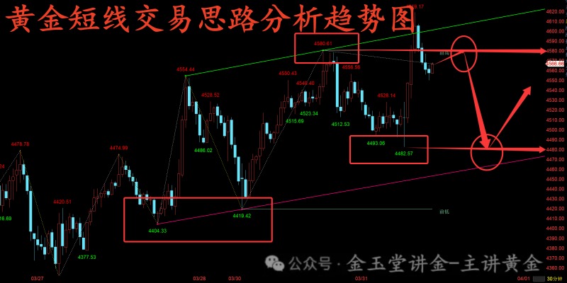3、欧盘金价如果再度二次试探上方4580-4620关口压制但还是难以站稳,那么我们短线也可以考虑轻仓做空一波,等待行情承压回调再看下方4500-4480附近支撑在考虑做多就行(短线行情难破可考虑布局的思路)