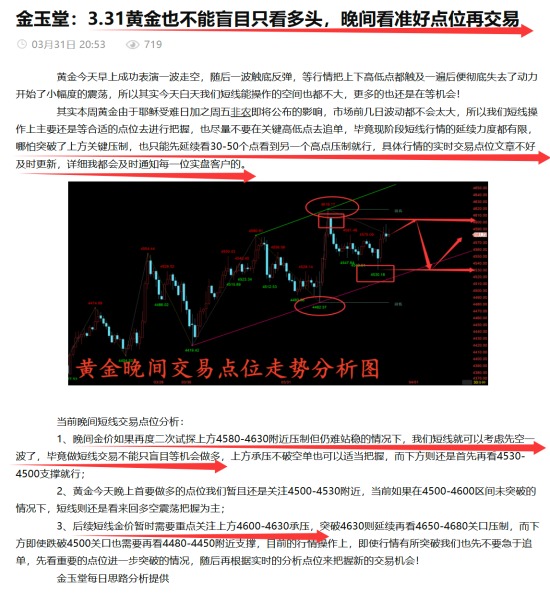 2、后续短线金价暂时需要重点关注上方4630承压,突破4630则延续再看4650-4680关口压制,而下方即使跌破4500关口也需要再看4480-4450附近支撑,目前的行情操作上,即使行情有所突破我们也先不要急于追单,先看重要的点位进一步突破的情况,随后再根据实时的分析点位来把握新的交易机会!