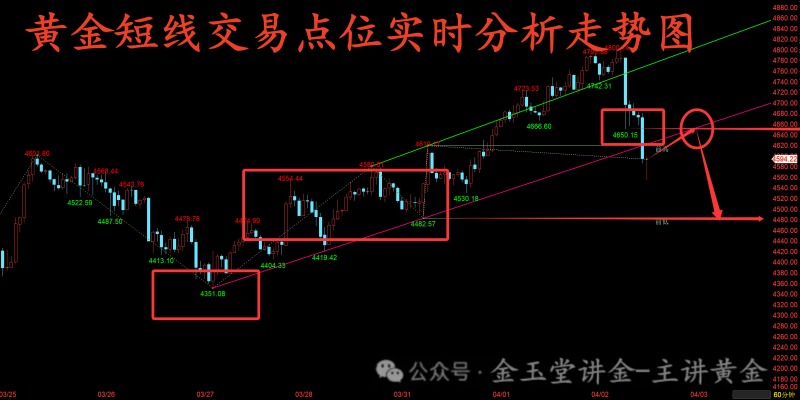 接下来回归我们技术面分析来看,前期由于有停战的影响,我们多头从下方4350一路看到了上方4800,而现在不停战继续延续冲突,那么我们就得开始转换为看空趋势,以4800今天早盘最高点,一路在看到下方现在4550-4480乃至前期4430和4350关口,而上方目前首要做空点位我们可以暂时放在4650-4680高点附近,而下方空单目标今天暂时先看4500-4480关口支撑跌破情况,如果接下来跌破4500-4480关口,那么市场还可能会引来一波延续性抛售走跌,下方可能会单边去到4430甚至跌回周五多头起涨点4350关口!
