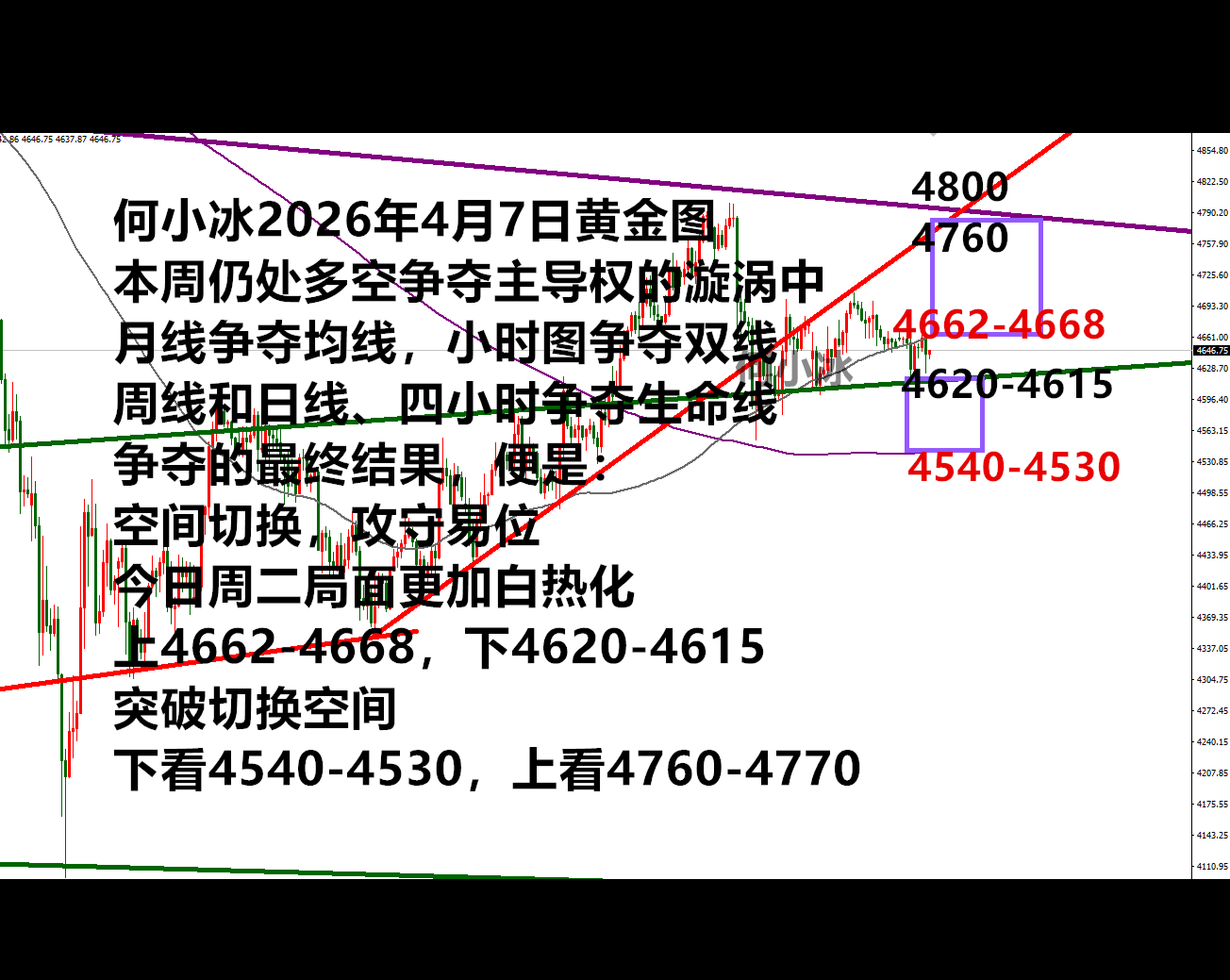 不过说实话,这两天连续的在4600-4700区间来回震荡也给了我们短线较多的交易机会,并且不管你是以4600支撑不破看多的还是和我们一样主要以4700压制看空的,都能给到机会出局,当然我们虽然思路主看高位做空,但是其实我们昨天晚上给出的分析也是在4600-4700区间不破的时候多空一起来回把握,就像今天早上的行情,我们肯定是先出空,然后又反手做多了,反正多空方向不出来,我们短线就把多空利润都拿住再说。