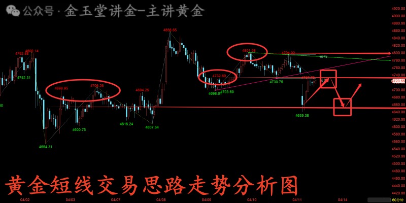 黄金本轮反弹承压4850附近回落,周末借助谈判失败的消息刺激,快速低开至4640附近随即反弹4700上方,说明跌势不持续,核心节奏还是震荡洗盘,目前短时间既然不具备走大幅单边上涨和下跌的条件,那么说明现在短线震荡才刚刚开始。而很多人遇到这种震荡行情的时候,不知道怎么操作,其实很简单,震荡就是两头来回把握的思路,如果是做短线的,就不要贪,如果是做长线的,就要耐心,不能既要又要还要。所以,对行情的大中小进行区分,对自己的资金也要进行区分,这是我一直强调的核心问题。行情并不是决定投资是否成功的关键因素,核心因素在自己对行情的核心看法。