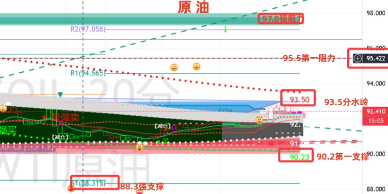 【个人建议:高空为主;WTI分水岭:93.5/桶!以上观点,仅供参考;分散合理布局,严控风险!关注笔者(