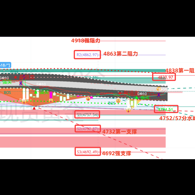 反之,想要重新重启上涨,需要站上站稳4824上方,然后就真的要趁势而为去突破拉升找寻4880,以及4930