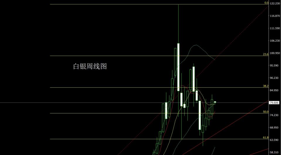 白银市场上周低开在74.679的位置后行情先回落,周线最低给到了72.553的位置后行情强势拉升,周线最高触及到了83.051的位置后行情整理,周线最终收线在了80.925的位置后,周线以一根下影线稍长于上影线的大阳线收线,而这样的形态收尾后,今日的行情低开回踩还需多,点位上,今日79多止损78.75,目标看80和80.3和80.6和81.