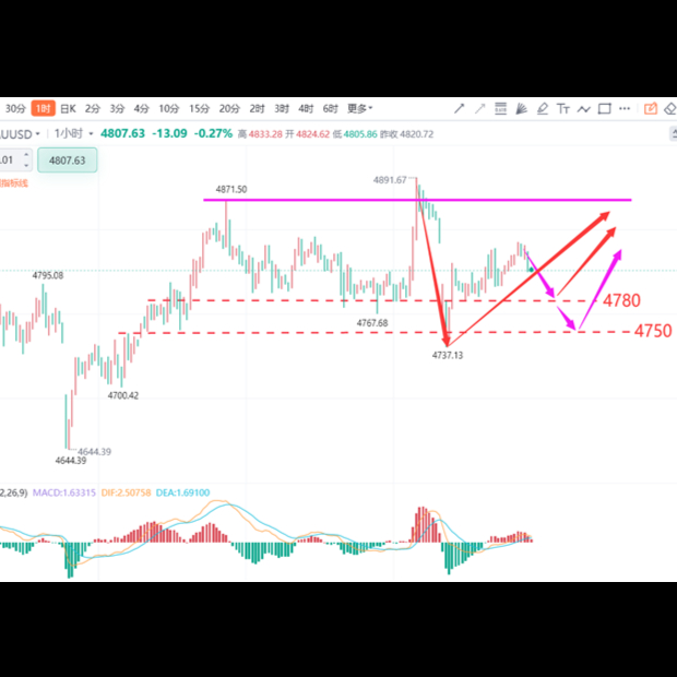 黄金昨日跳空低开后反弹,日线小幅收跌,现汇价交投于4792附近。周末中东紧张局势重燃曾一度打压黄金跳空低开,但在美联储官员发表鸽派言论和中东谈判仍有达成希望的影响下,黄金反弹收复了此前的部分跌幅。不过,美债收益率上行限制了黄金的反弹空间。今日关注4850附近的压力情况,下方支撑在4750附近。