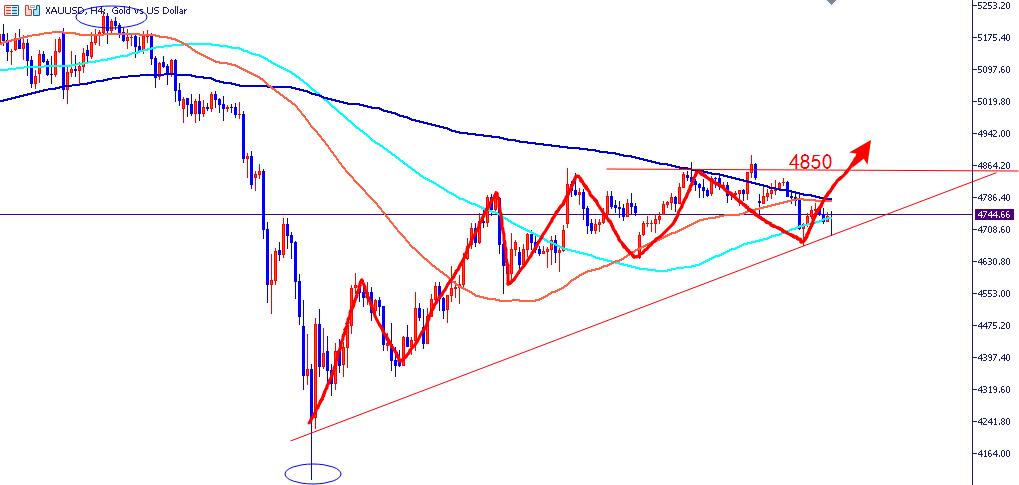 目前盘面来看:金价围绕4680-4800美元区间震荡运行,大概率先回踩测试4680美元支撑,企稳后逐步震荡反弹,整体呈现探底回升走势。只要守住4680 美元关键支撑,短线调整不改偏强预期。操作思路:4680 美元上方坚定低多,切勿盲目抄底追空。回落至4680-4700区间企稳即可布局多单!