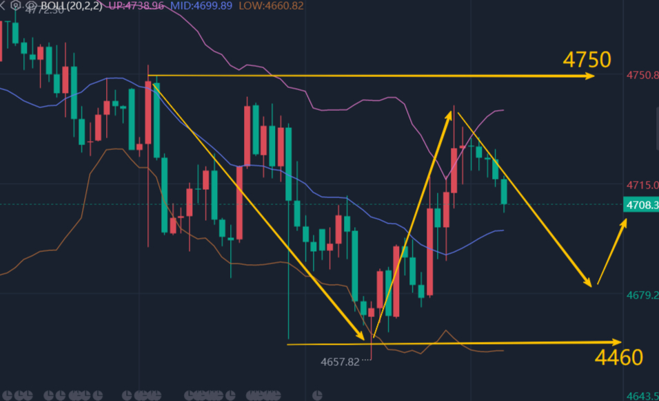 操作策略:建议反弹至4740-4730做空,止损4751,目标4680-4660附近;