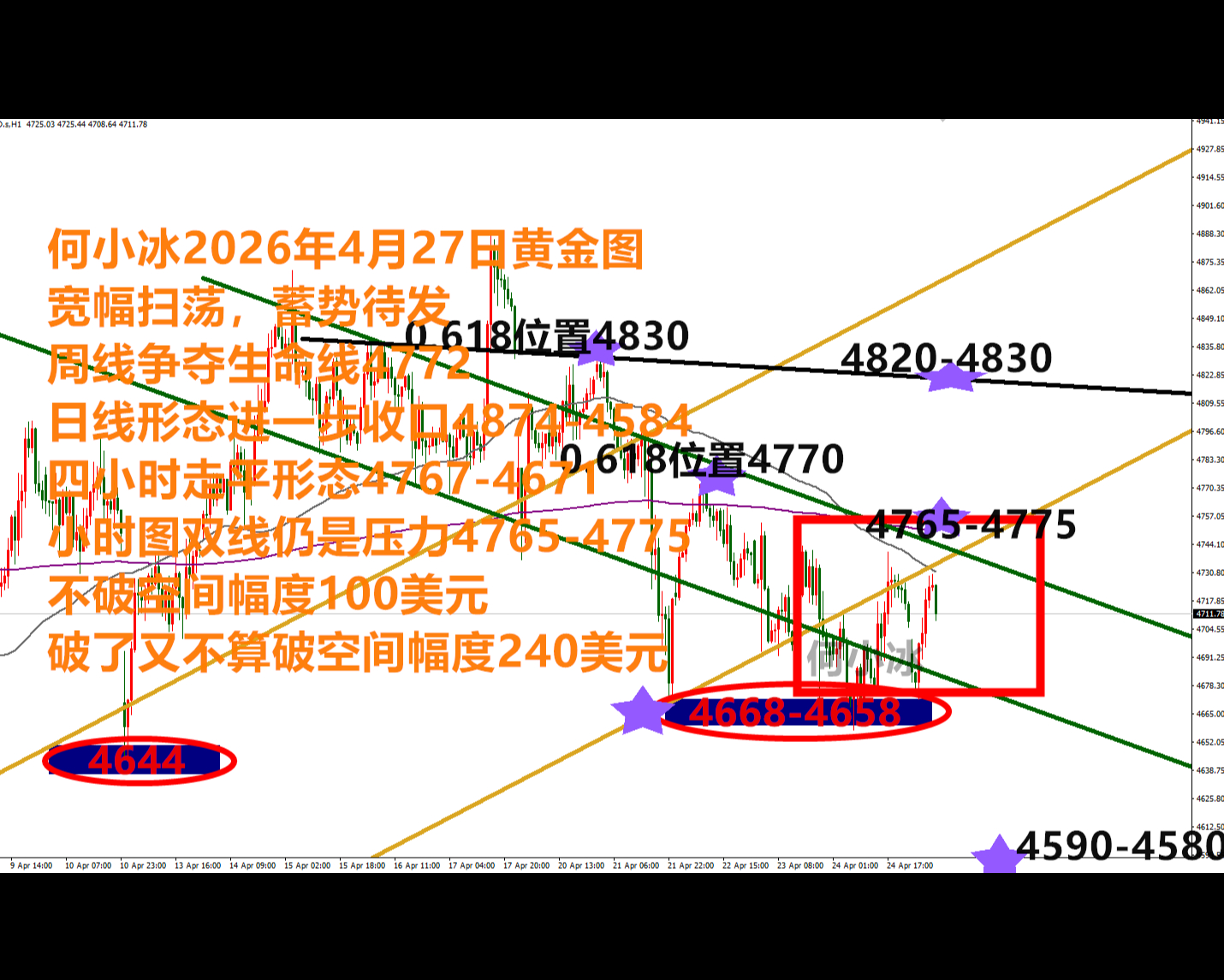 展望本周周一(4月27日):国际黄金再度低开走弱,因周末美伊和平谈判陷入僵局,而通过霍尔木兹海峡的石油运输量依然有限,这使得全球石油供应持续紧张。继续推升通胀担忧,减弱美联储降息预期,打压金价回落。