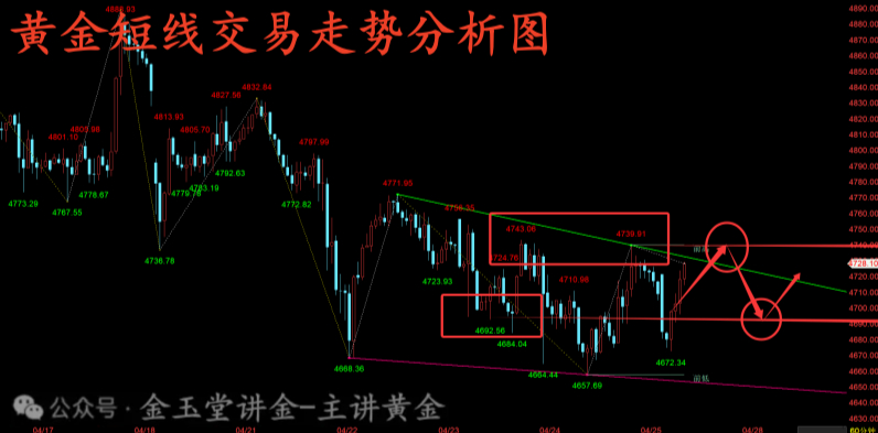 综合来看,国际黄金短期偏空格局已确立。地缘局势僵局推升通胀与加息预期、美联储鹰派货币政策延续、资金持续流出等因素将共同压制金价。短期内,金价大概率将延续震荡下行走势,下方关键支撑位为4650美元/盎司,若该位置失守,将进一步下探4550美元。中长期来看,黄金牛市格局虽未改变,但短期回调深度可能超出市场预期,需等待空头力量充分释放后,再考虑布局多单。综合来看,黄金今日短线操作思路上贺博生建议以回踩低多为主,反弹高空为辅,上方短期重点关注4740-4770一线阻力,下方短期重点关注4690-4670一线支撑。