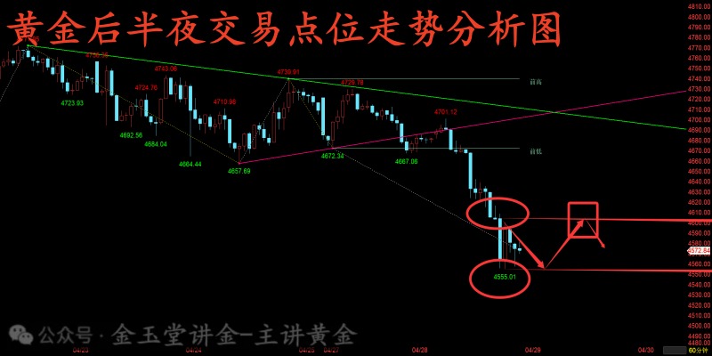 2、现在先等金价这波空头逐步企稳,如果短线二次试探下方4554关口附近开始逐步下破,那么我们短线就直接顺势再度看到下方4533新低,而如果行情二次试探4554附近难以有效跌破,那么我们短线就可以考虑轻仓做多一波,去博取一波短线的行情企稳反弹,而这波多单上方则还是继续再看4600附近首要压制。